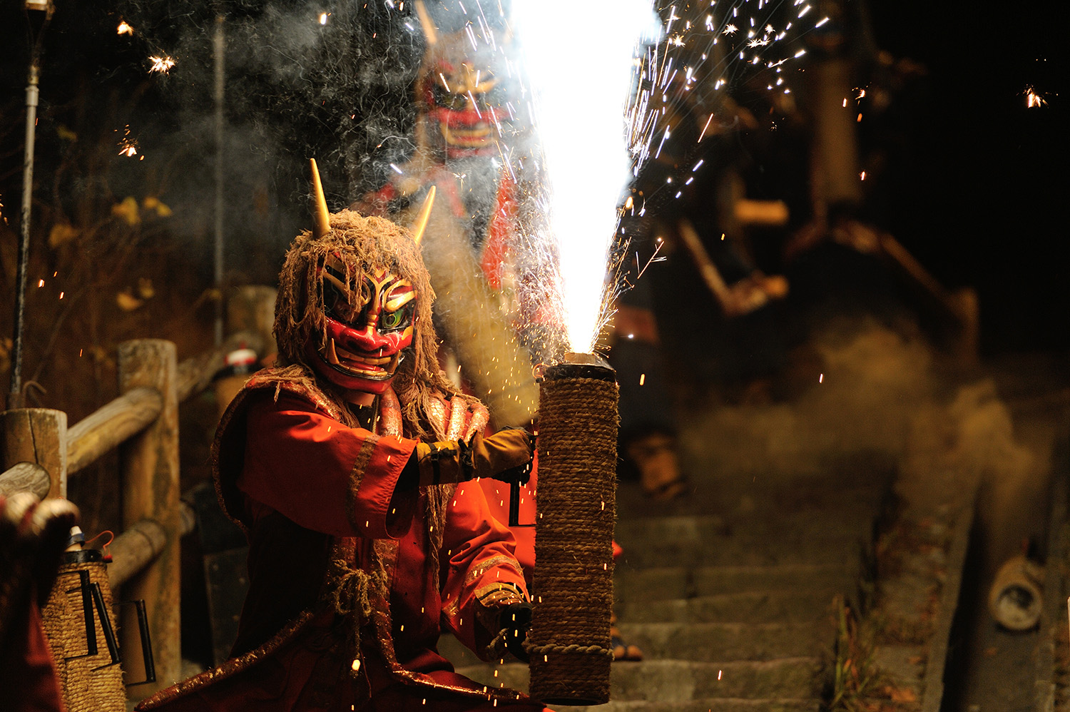 The Opening Ceremony of Oni Hanabi in Jigokudani