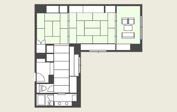 12-tatami mat room + spacious 8-tatami room provides