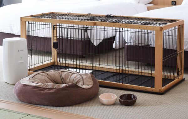 Amenities for dog Original doggy bag / Handy shower for a walk / Paw care cream / Bottled water / Drinking bowl for dog / 3 toilet sheets / Deodorizer dust box / Cushion for dog / One indoor crate[L150xW60xH59.5(cm)]