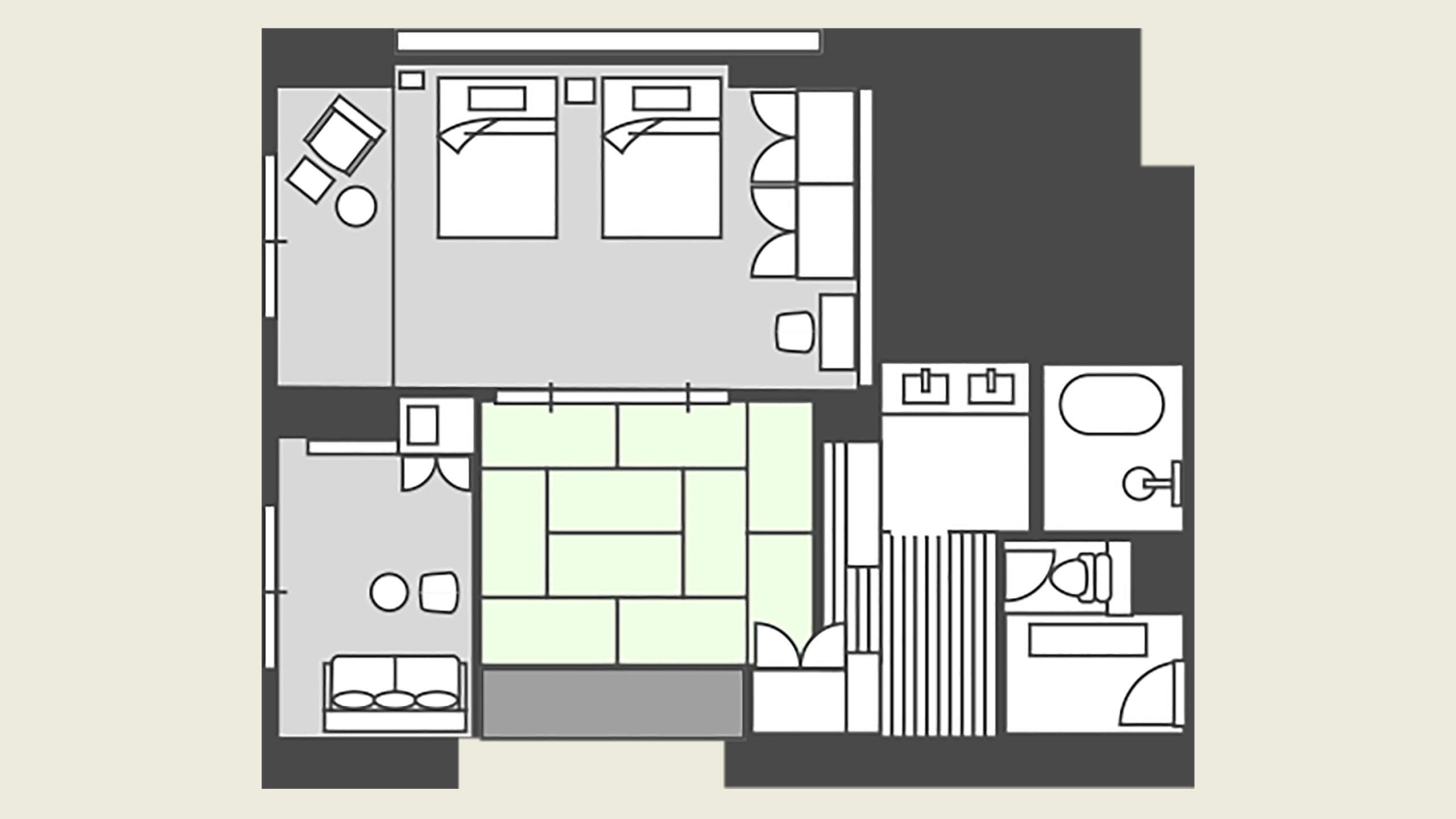 Facilities Soaking tub (not onsen water) / Separate toilet / Two washbasins / Air conditioner / Flat-screen TV / Safe / Refrigerator / Humidifier and air purifier / Warm water washing toilet seat / Massage chair / LED makeup mirror