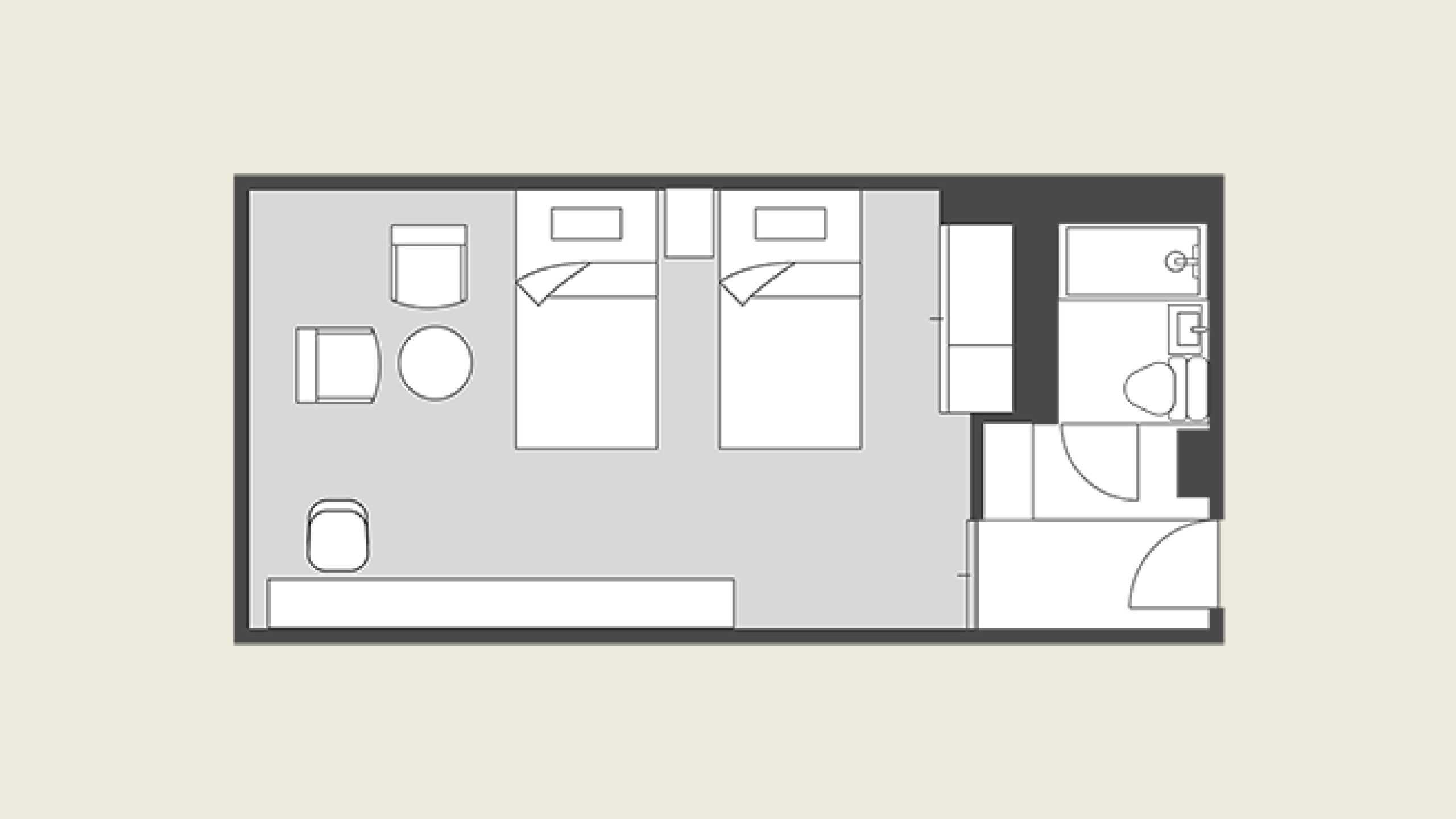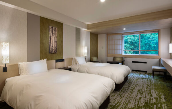 Superior Twin rooms blend a modern Japanese sensibility in the relaxing colour palette, carpeting and furnishings.
