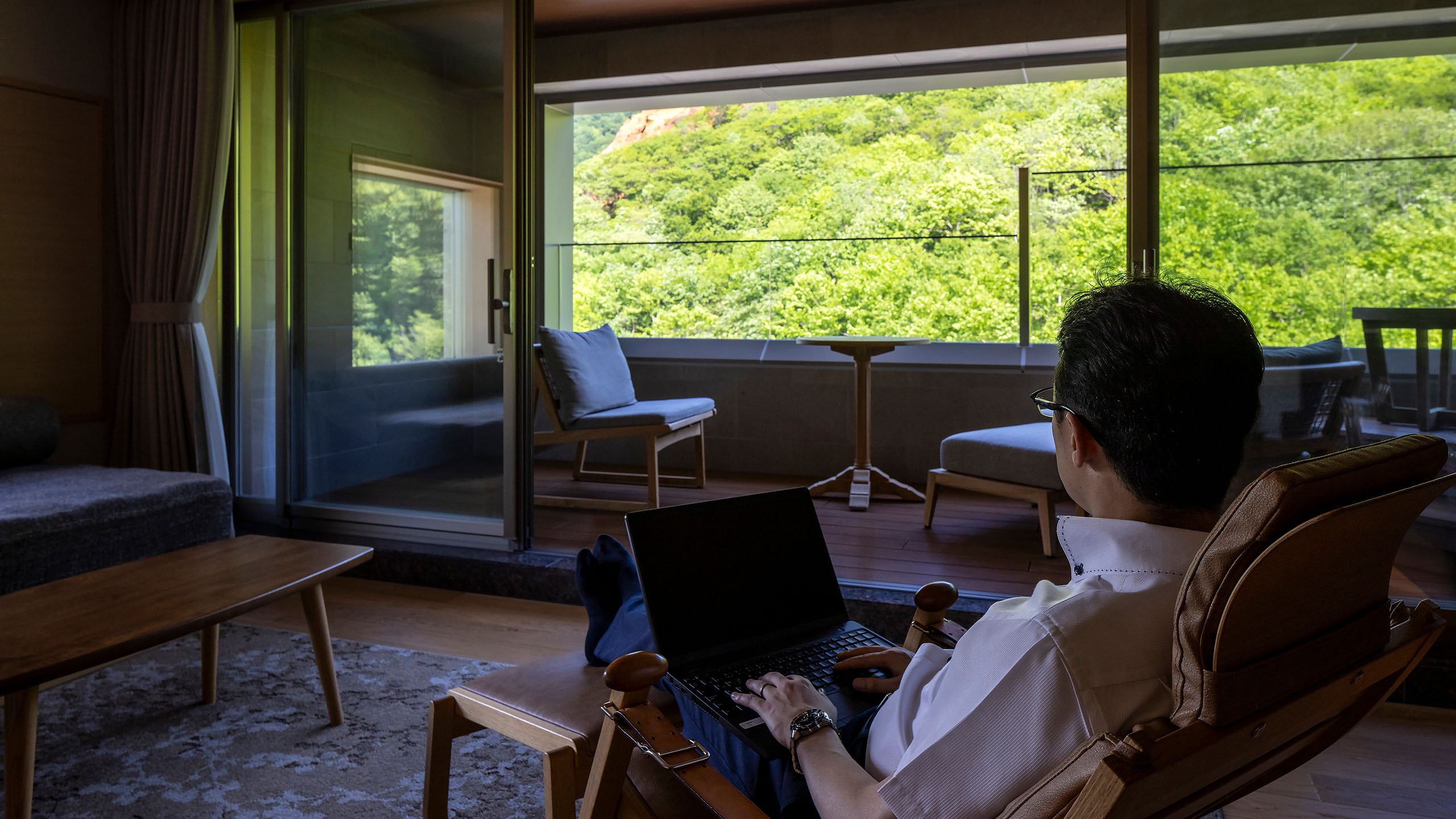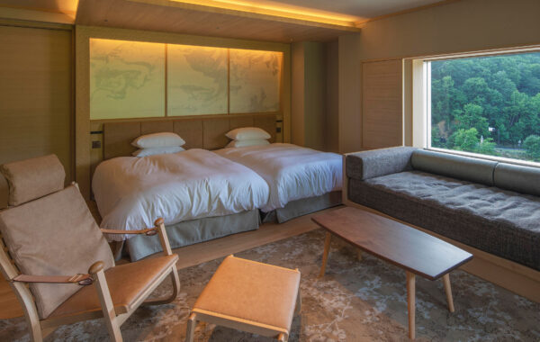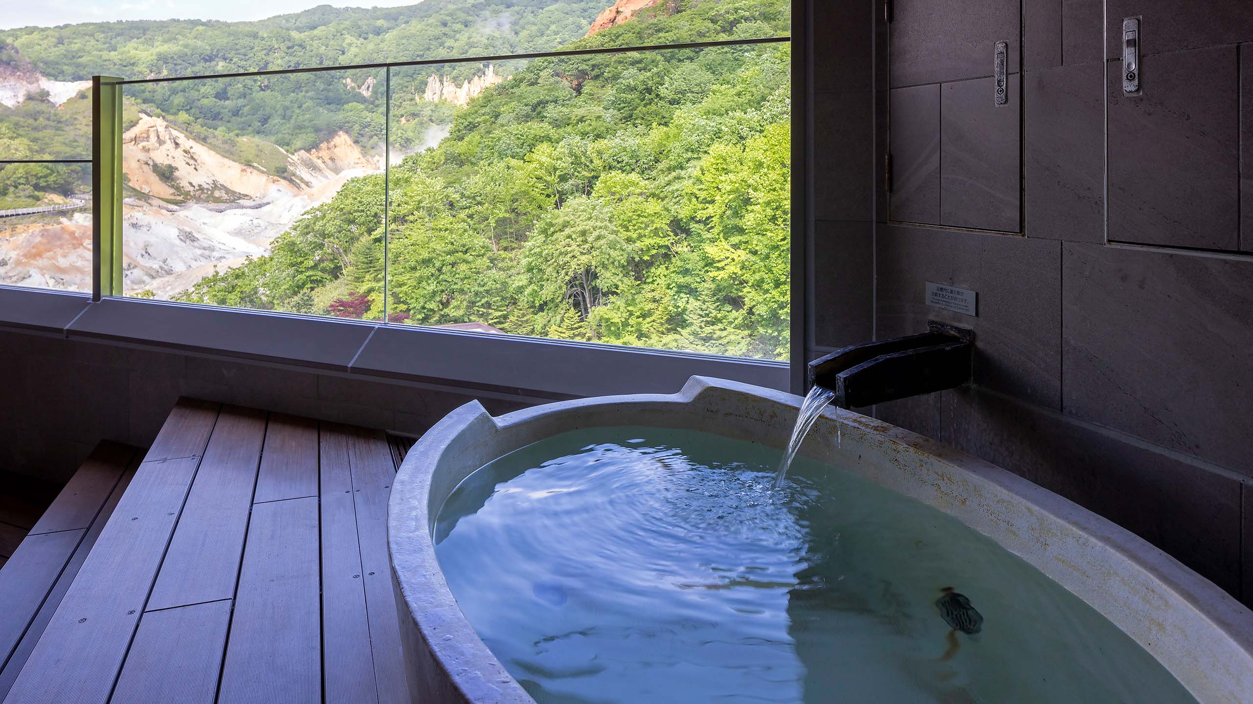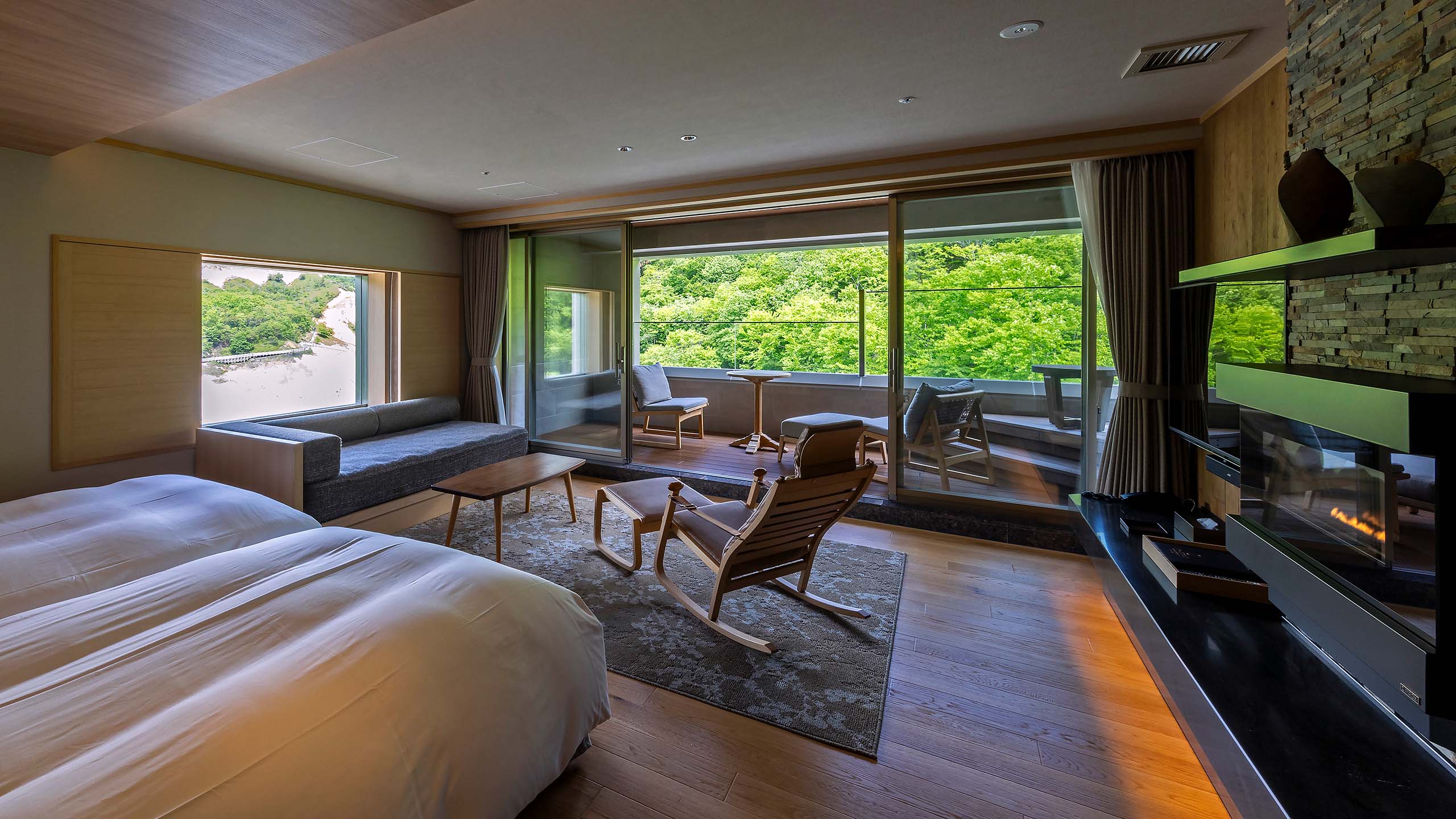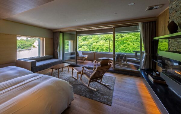 | Facilities | Soaking tub (onsen water) / Separate toilet / Two washbasins / Air conditioner / Flat-screen TV / Safe / Refrigerator / Humidifier and air purifier / Warm water washing toilet seat / LED makeup mirror / Fire place |