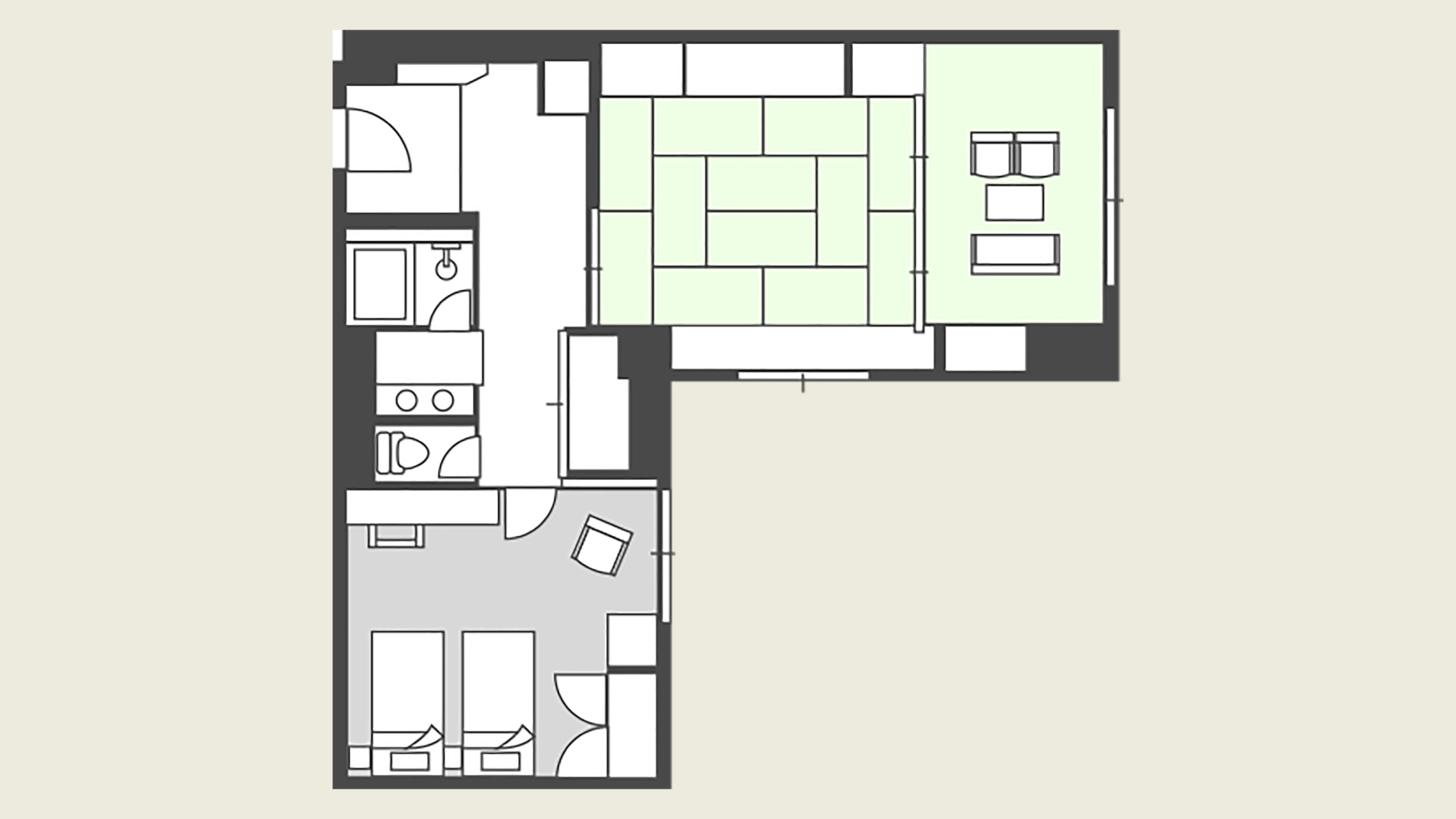 | Facilities | Soaking tub (not onsen water) / Separate toilet / Two washbasins / Air conditioner / Flat-screen TV / Safe / Refrigerator / Humidifier and air purifier / Warm water washing toilet seat / Massage chair / LED makeup mirror |