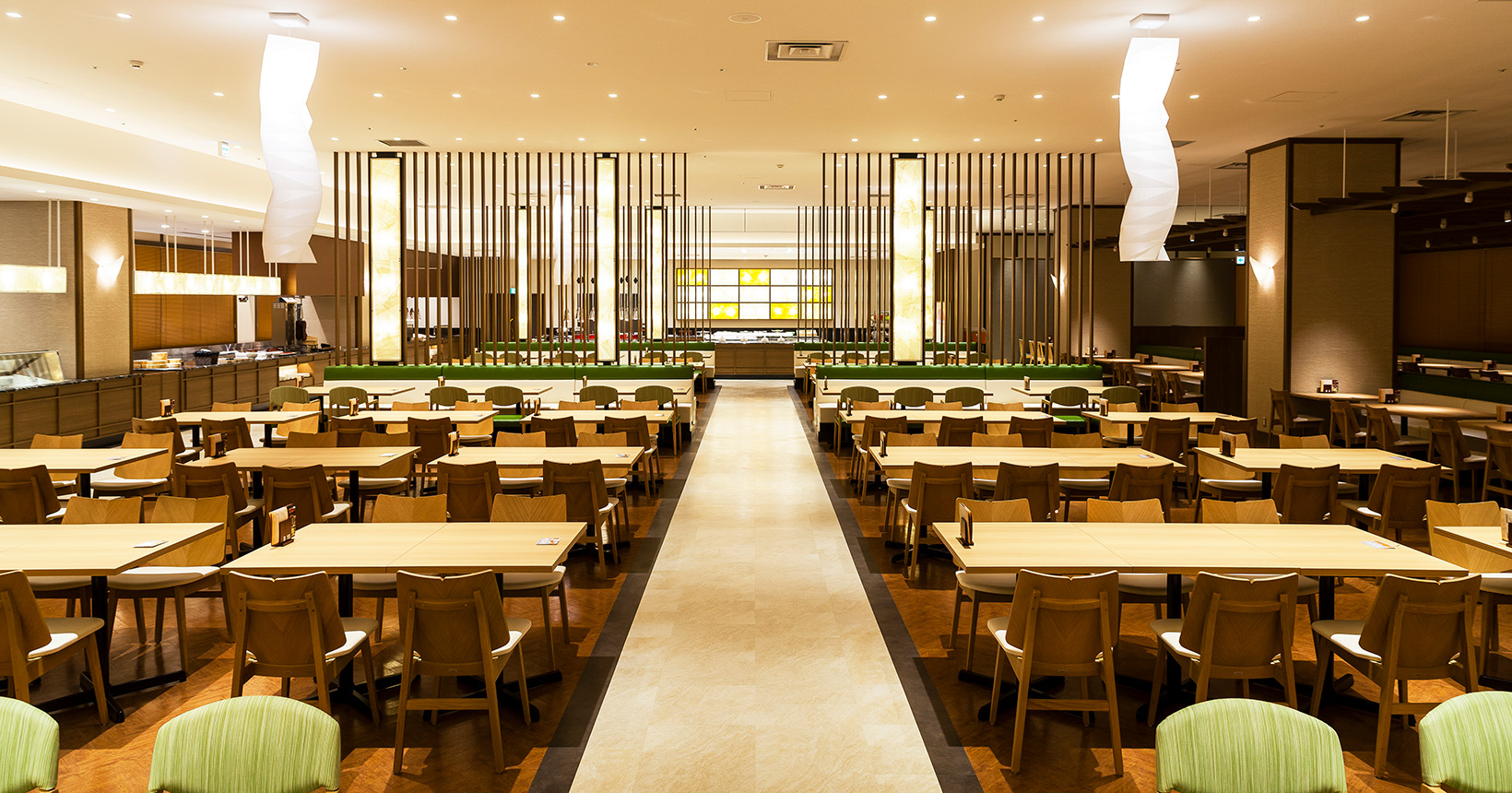 朝日が降り注ぐビュッフェダイニングで和食や洋食