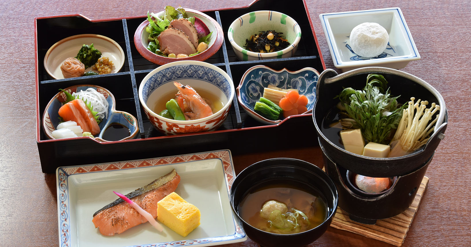 朝日が降り注ぐ「湯の里」で季節の和定食をご用意