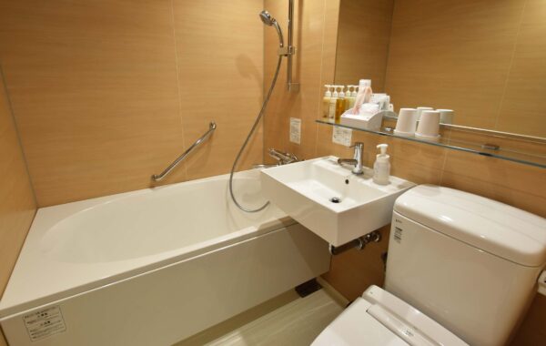 | アメニティー | 歯ブラシ / ヘアブラシ / ノンシリコンシャンプー / ノンシリコンヘアコンディショナー / ボディソープ / ハンドソープ / ビニール巾着 / シャワーキャップ(女性のみ) / カミソリ(男性のみ) / フェイスタオル / バスタオル / バスマット |