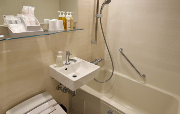 | アメニティー | 歯ブラシ / ヘアブラシ / ノンシリコンシャンプー / ノンシリコンヘアコンディショナー / ボディソープ / ハンドソープ / ビニール巾着 / シャワーキャップ(女性のみ) / カミソリ(男性のみ) / フェイスタオル / バスタオル / バスマット |