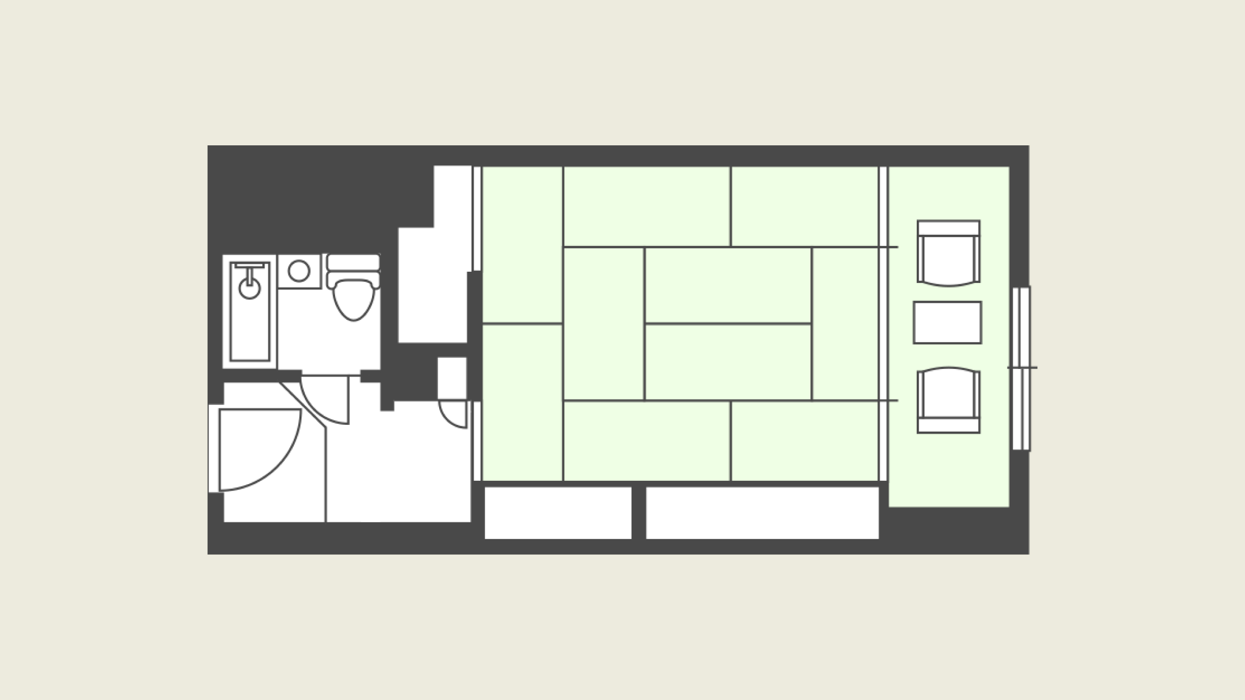 | 設備 | ユニットバス / 冷暖房設備 / テレビ(地上波のみ) / 金庫 / 冷蔵庫 / 加湿空気清浄機 / 温水洗浄便座 |