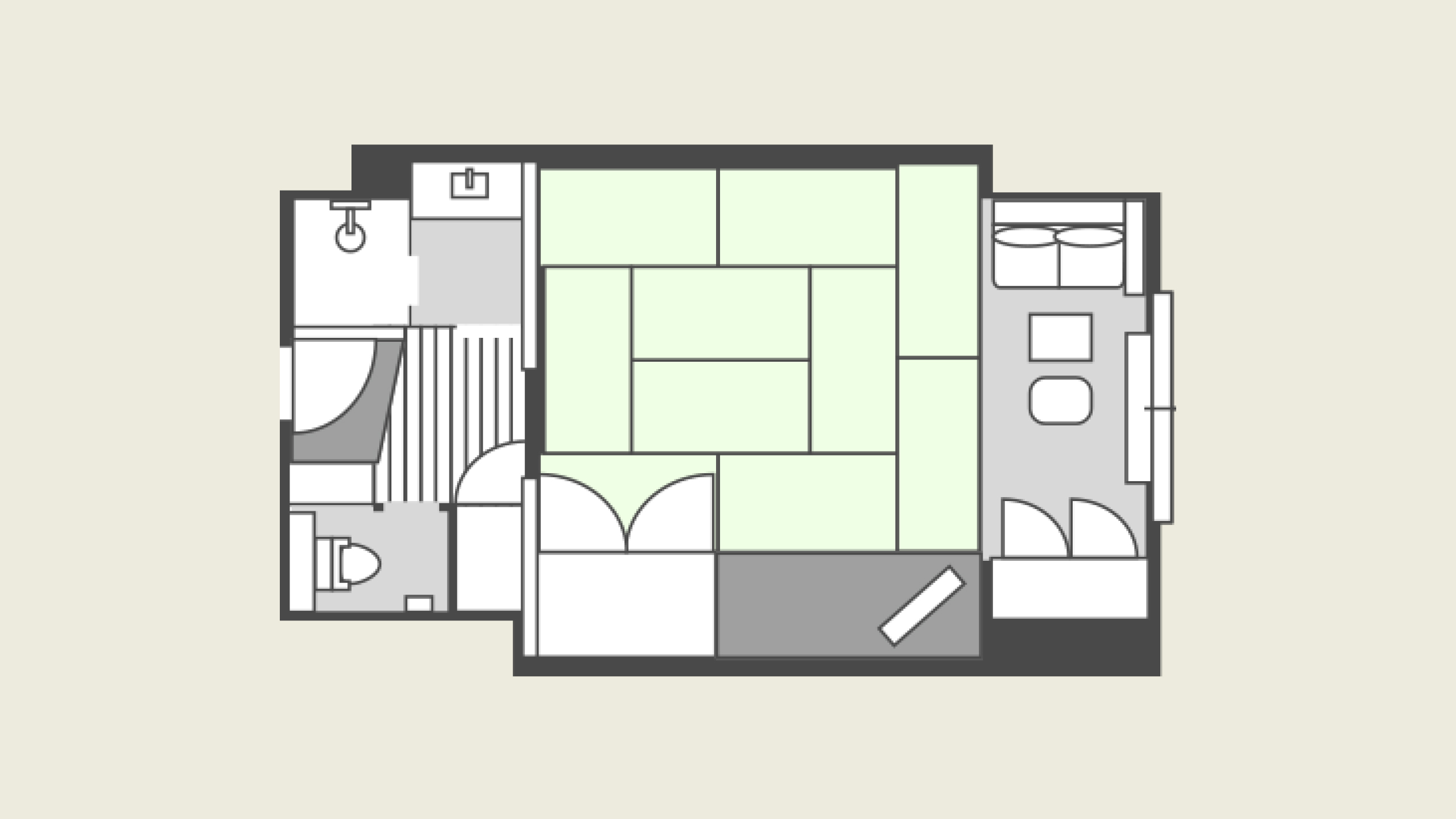 | 設備 | シャワーブース / 冷暖房設備 / テレビ(地上波のみ) / 金庫 / 冷蔵庫 / 加湿空気清浄機 / 温水洗浄便座 |