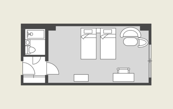 アメニティー 歯ブラシ / ヘアブラシ / ノンシリコンシャンプー / ノンシリコンヘアコンディショナー / ボディソープ / ハンドソープ / ビニール巾着 / シャワーキャップ(女性のみ) / カミソリ(男性のみ) / フェイスタオル / バスタオル / バスマット