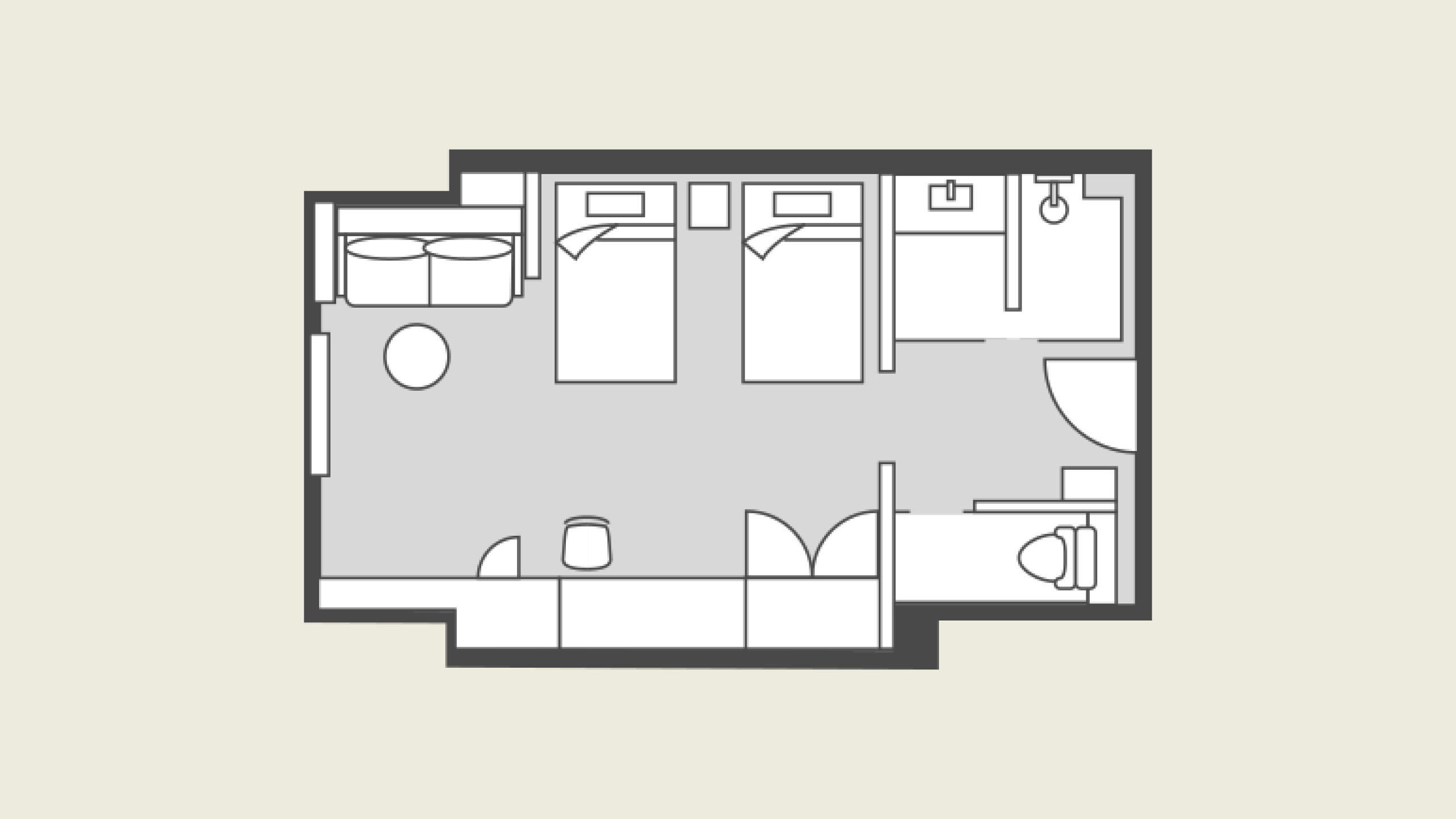 | 設備 | シャワーブース / 冷暖房設備 / テレビ(地上波のみ) / 金庫 / 冷蔵庫 / 加湿空気清浄機 / 温水洗浄便座 |