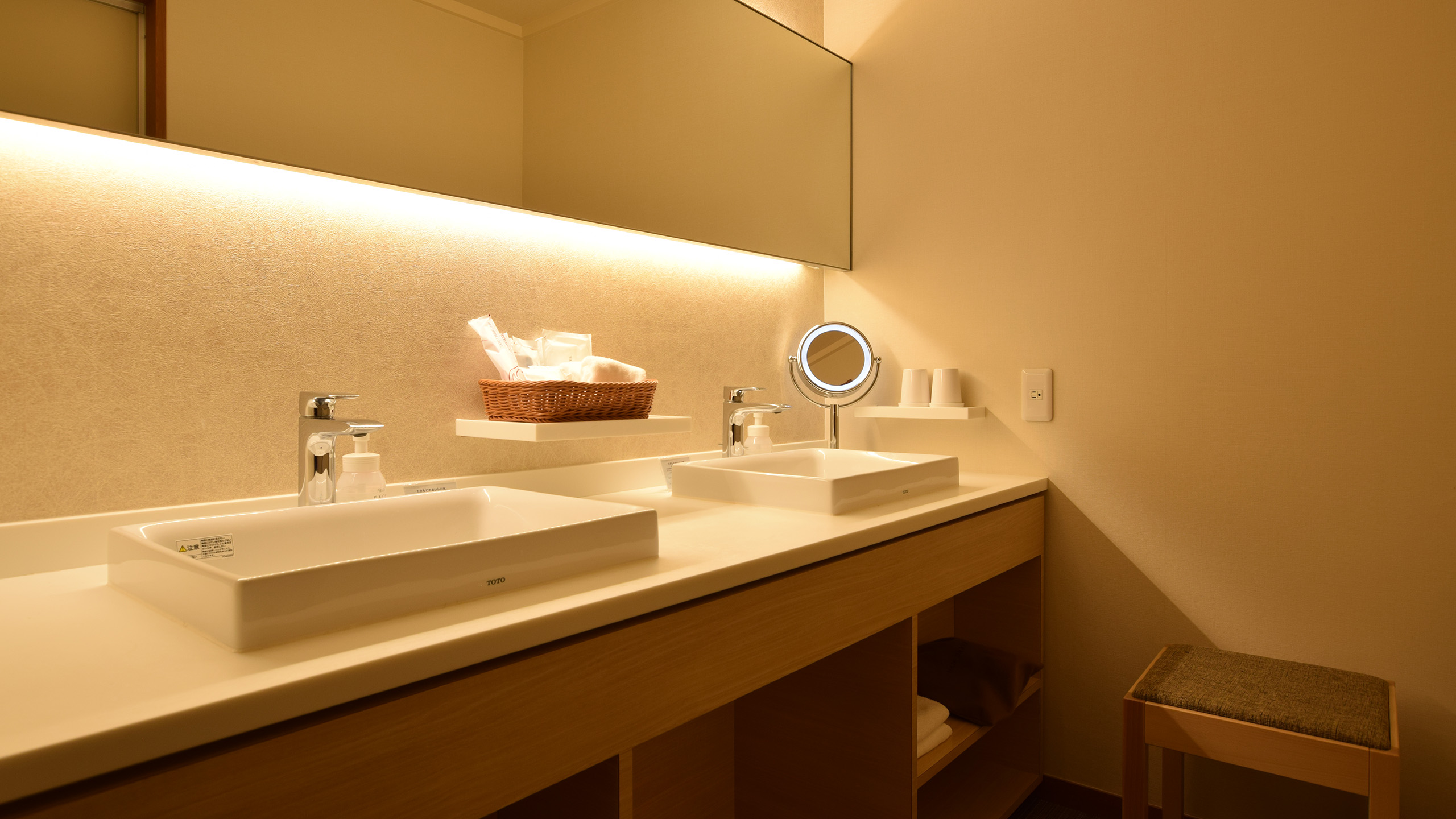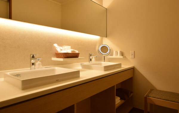 | アメニティー | 歯ブラシ / ヘアブラシ / ノンシリコンシャンプー / ノンシリコンヘアコンディショナー / ボディソープ / ハンドソープ / ビニール巾着 / シャワーキャップ / カミソリ / プレミアムコットンフェイスタオル / プレミアムコットンバスタオル / プレミアムコットンバスマット / ハンドタオル / 足袋ソックス / ボディタオル / 爪やすり・髪ゴム /スキンケアセット |